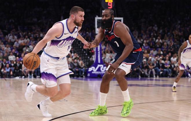 快船客场挑战爵士,爵士先发:马尔卡宁、菲利波夫斯基、凯斯勒、米哈伊柳克、乔治;快船先发:德里克-琼斯、莱昂纳德、祖巴茨、比尔、哈登!